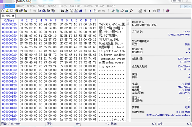 在做好鑒定的準(zhǔn)備工作后,神琥鑒定人員將行車記錄儀中SD卡,通過只讀設(shè)備連接至取證專用電腦,運(yùn)用數(shù)據(jù)恢復(fù)軟件制作其鏡像文件2018042.dd,并分別校驗(yàn)SD卡及其鏡像文件MD5值,經(jīng)比對(duì)兩者M(jìn)D5一致。